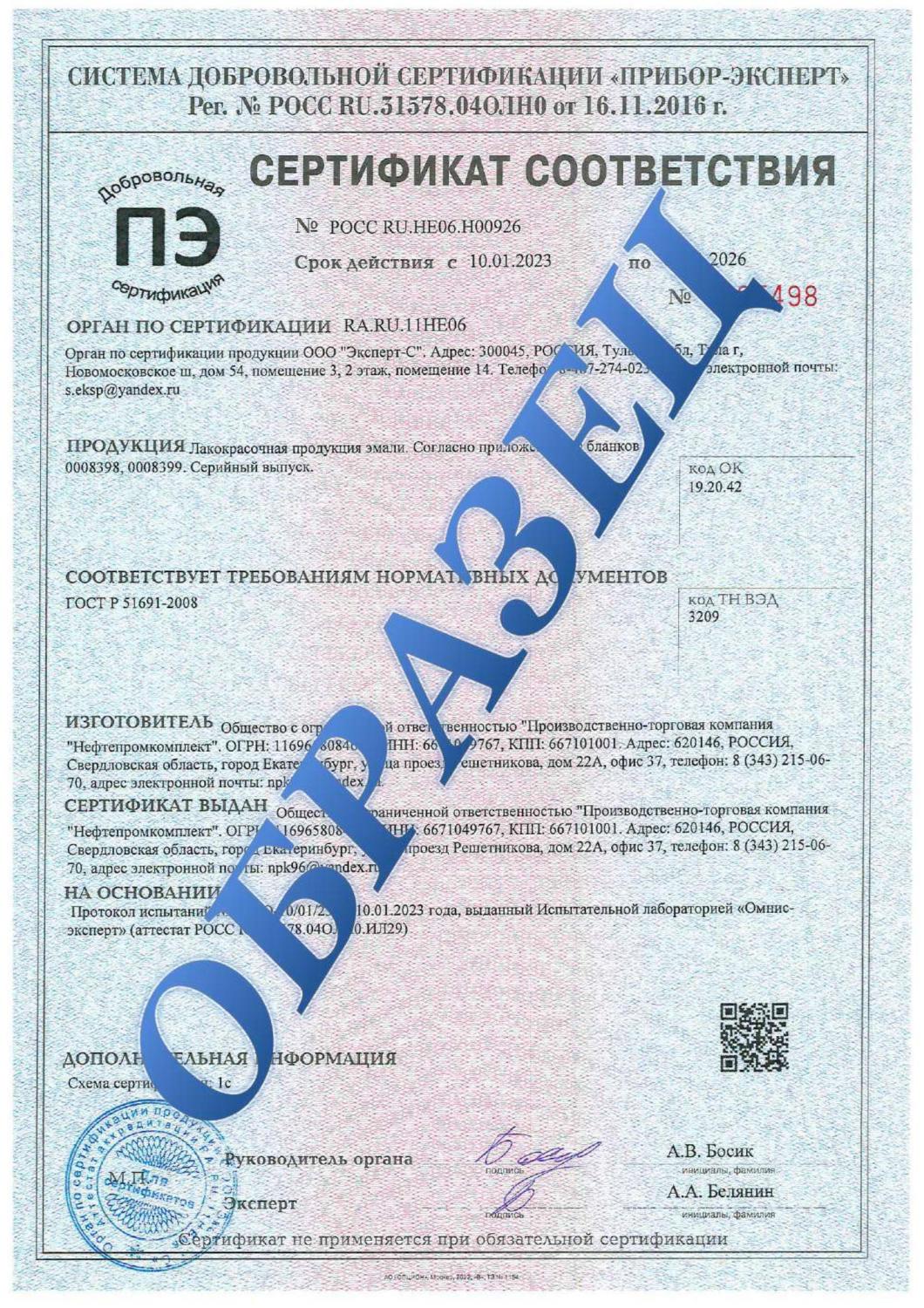 Сертификат на лакокрасочная продукция ЭМАЛИ