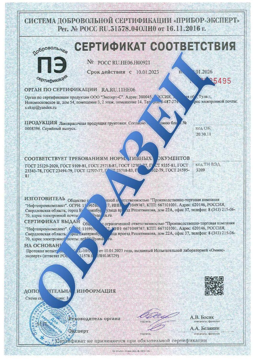 Сертификат на лакокрасочная продукция ГРУНТОВКИ